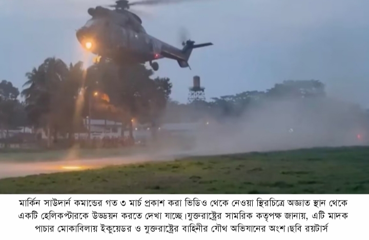 মধ্যপ্রাচ্যে চলমান উত্তেজনার মধ্যেই যুক্তরাষ্ট্র এবার দক্ষিণ আমেরিকার দেশ ইকুয়েডরে যৌথ সামরিক অভিযান শুরুর ঘোষণা দিয়েছে। ইরানে ধারাবাহিক হামলার প্রেক্ষাপটে লাতিন আমেরিকাতেও নিরাপত্তা সহযোগিতা বাড়ানোর কথা জানানো হয়েছে।