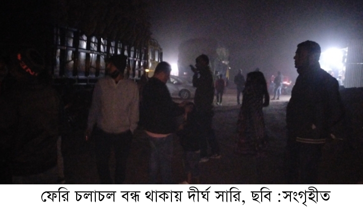 ঘন কুয়াশায় দৌলতদিয়া – পাটুরিয়া নৌরুটে ফেরি চলাচল বন্ধ, চরম ভোগান্তি