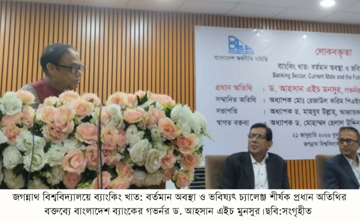 তিনি বলেন, ব্যাংকিং খাতের পাশাপাশি অন্যান্য আর্থিক খাতকেও সমান গুরুত্ব দিতে হবে। দেশের আর্থিক খাতের দুর্বলতার প্রসঙ্গে তিনি বলেন, সব সরকারই ব্যাংকনির্ভর অর্থনীতির ওপর ভর করেছে। অথচ বন্ড মার্কেট ও শেয়ারবাজার কাঙ্ক্ষিতভাবে বিকশিত হয়নি। অন্যদিকে ব্যাংকগুলো দীর্ঘমেয়াদি ঋণ দিতে আগ্রহীনয়; বাংলাদেশে সাধারণত ২০ থেকে ২৫ বছরের মেয়াদি ঋণ দেওয়া হয় না। ঋণ প্রদানের পরই ব্যাংক-গুলো গ্রাহকদের ওপর অতিরিক্ত চাপ সৃষ্টি করে—এমন একটি ব্যবস্থা দীর্ঘদিন ধরে চালু রয়েছে।অনুষ্ঠানে আরও উপস্থিত ছিলেন জগন্নাথ বিশ্ববিদ্যালয়ের উপাচার্য অধ্যাপক ড. রেজাউল করিম, অর্থনীতি সমিতির আহ্বায়ক অধ্যাপক ড. মাহবুব উল্লাহ এবং সদস্যসচিব ড. মোহাম্মদ হেলাল উদ্দিনসহ অন্যান্য অতিথিবৃন্দ।