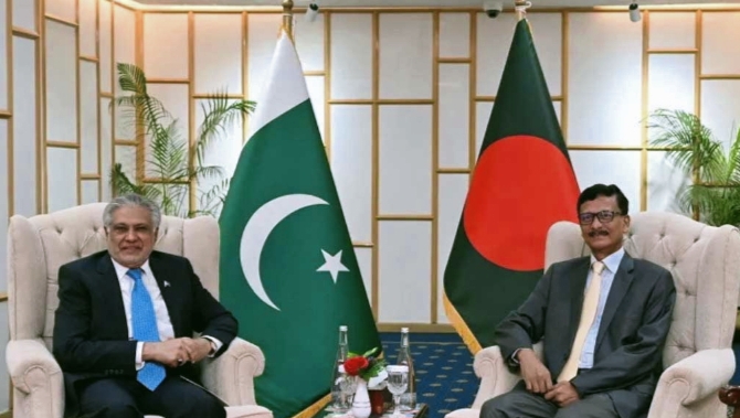 ঢাকায় গত২৪ আগষ্ট বৈঠক করেন পাকিস্তানের উপ- প্রধানমন্ত্রী ইসাহক দার ও বাংলাদেশের পররাষ্ট্র উপদেষ্টা তৌহিদ হোসেন ছবি: বাংলাদেশ পররাষ্ট্র মন্ত্রণালয়