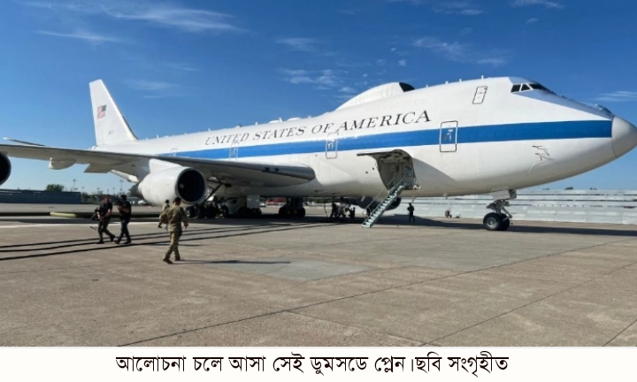 গনের মতো আকৃতির এই বিমানটি সাধারণ মানুষের চোখে পড়তেই সামাজিক যোগাযোগমাধ্যমে শুরু হয় নানা আলোচনা ও জল্পনা। বিশ্বজুড়ে চলমান উত্তেজনাকর পরিস্থিতির কারণে বিষয়টি আরও বেশি আলোচনায় আসে।ফ্লাইট ট্র্যাকিং তথ্য অনুযায়ী, বিমানটি যুক্তরাষ্ট্রের অফাট বিমানঘাঁটি থেকে যাত্রা শুরু করে মেরিল্যান্ড অঙ্গরাজ্যের ক্যাম্প স্প্রিংস এলাকায় যায়, যা রাজধানী ওয়াশিংটন ডিসি–এর খুব কাছেই অবস্থিত। সেখান থেকে বিমানটি সরাসরি লস অ্যাঞ্জেলেসে পৌঁছায়। সাধারণত এ ধরনের বিমান জনসমক্ষে দেখা যায় না। তাই দেশের অভ্যন্তরে এমন উড্ডয়ন স্বাভাবিকভাবেই সবার নজর কেড়ে নেয়।এই বিমানটি মূলত জাতীয় জরুরি পরিস্থিতির জন্য প্রস্তুত করা হয়েছে। পারমাণবিক হামলার মতো ভয়াবহ পরিস্থিতিতেও কার্যকরভাবে কাজ করার উপযোগী করে এর নকশা তৈরি। যুদ্ধ কিংবা বড় ধরনের সংকটের সময় সরকার পরিচালনা সচল রাখাই এর প্রধান উদ্দেশ্য। সে কারণেই এর নাম ‘ডুমসডে প্লেন’। এই বিরল উড্ডয়নের খবর ছড়িয়ে পড়তেই নানা গুঞ্জন শুরু হয়।