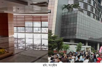 এনই আই আর চালুর প্রতিবাদে বি টি আর সি ভবনে ভাঙচুর