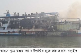 সেন্টমার্টিনগামী জাহাজে আগুনে কর্মচারী নিহত, উদ্ধার ১৫